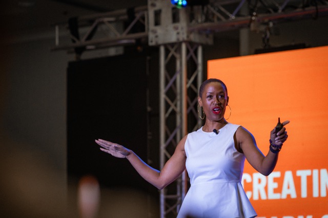 Candace Doby on stage at the IIDA -NY Leaders Breakfast